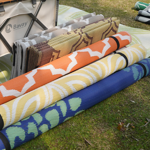 Alfombrillas líderes en fabricación WANMI, venta al por mayor, alfombrilla de plástico tejida PP personalizada para interior y exterior, alfombrilla de Picnic en la playa para RV